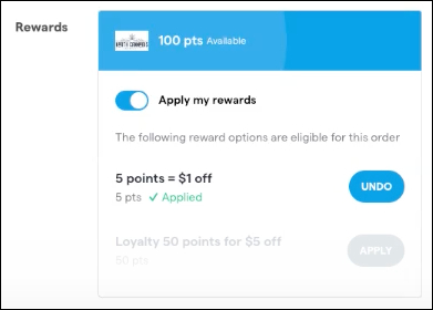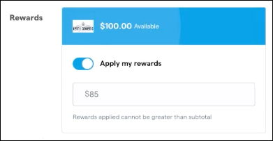 If your redemption method is Apply loyalty as payment method (pre-tax), customers can toggle Apply my rewards and then enter a dollar amount to redeem.