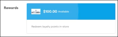 If your redemption method is Apply loyalty as payment method (post-tax), customers cannot apply their rewards online but will see their current points balance (or dollar equivalent) and a call to action to redeem loyalty points in-store.