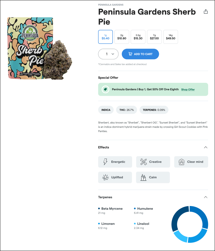 Shoppers are now able to view and sort by total terpenes on online Dutchie menus. Product list pages will feature the option to sort by total terpenes and the menu product cards will also show terpenes.