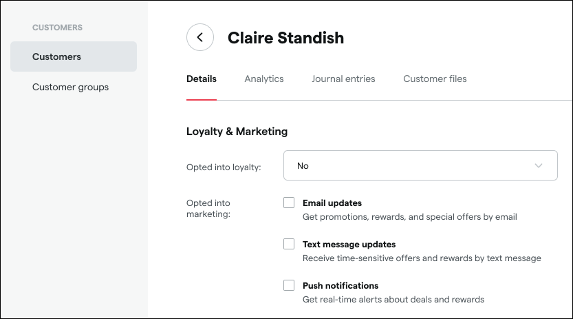 These settings, along with the ability to change whether a customer is opted in to your loyalty program altogether, will also be added to customer profiles in the Backoffice: