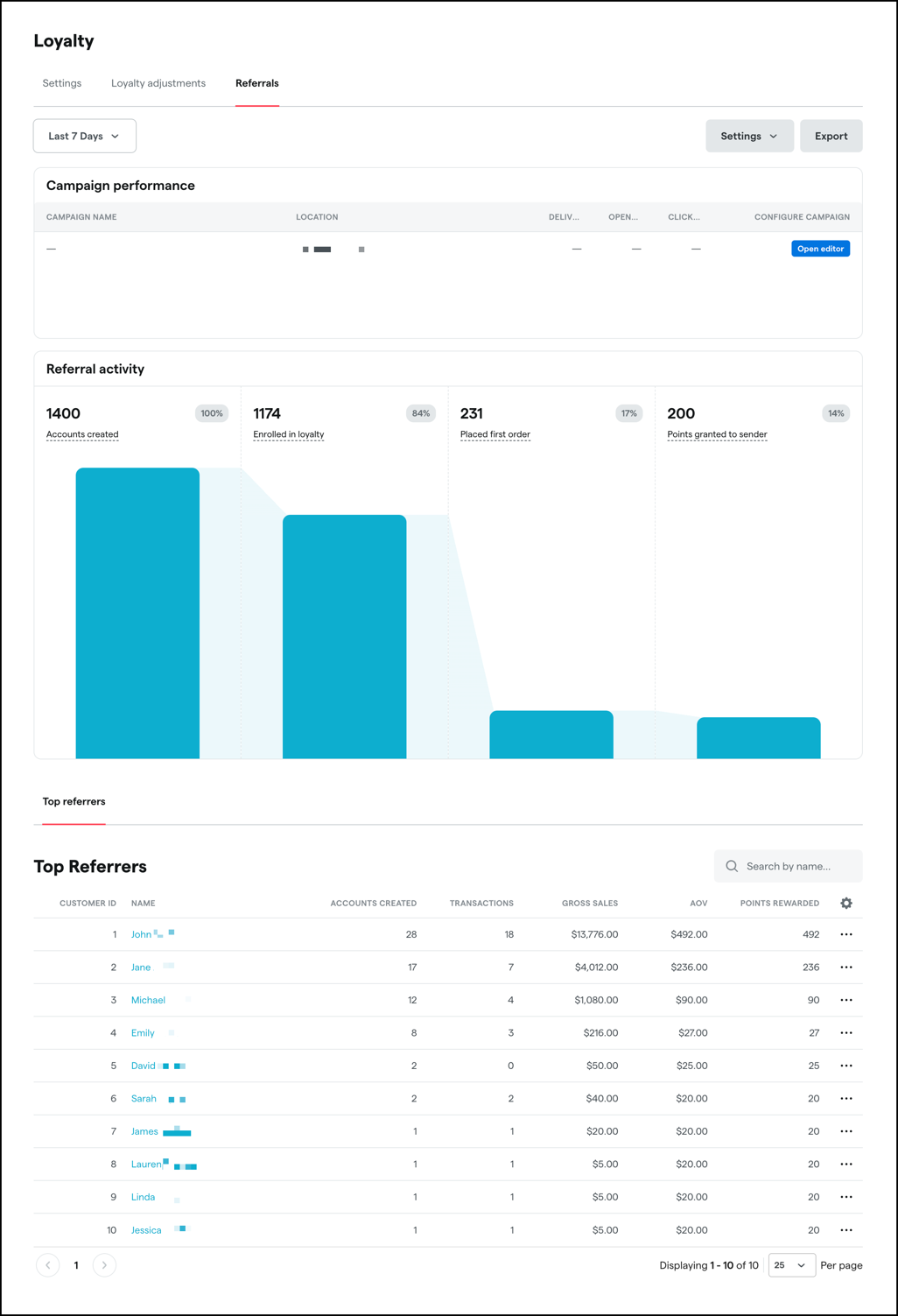 Rewards, minimum spend for qualifying purchases, and automated campaign messages for referrers will all be configurable in the Backoffice under Marketing > Loyalty > Referrals.