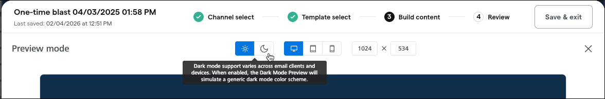 Preview how campaigns will appear on devices with dark mode enabled: