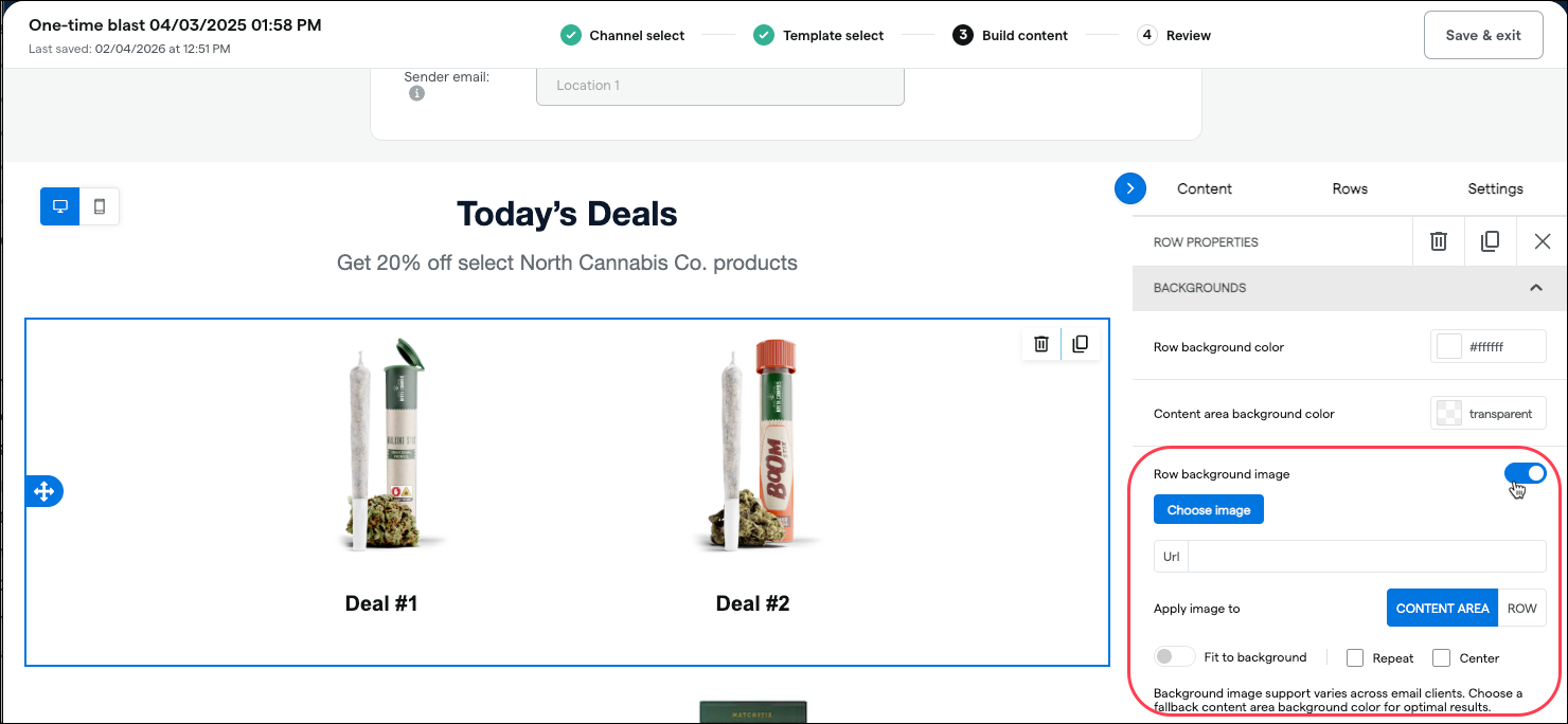 Set a Row background image: