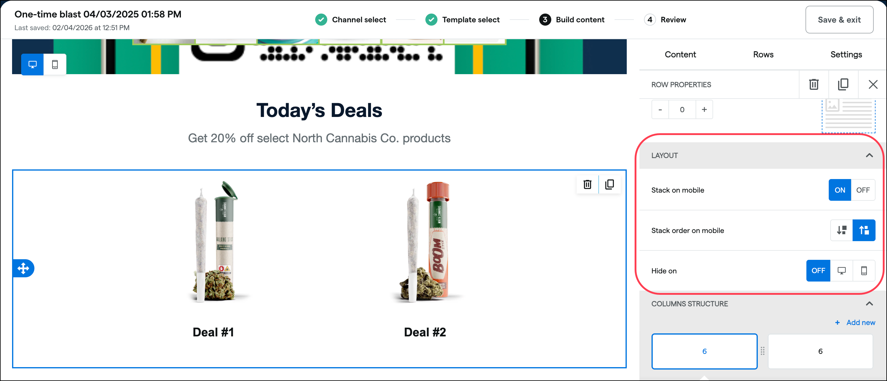Hide sections on desktop, mobile, or neither (off)