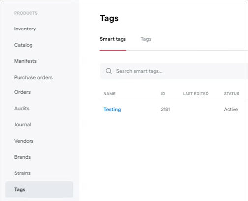 A new Tags section under the Products menu will now house tabs for Smart tags and standard Tags (currently located under Products > Configure).