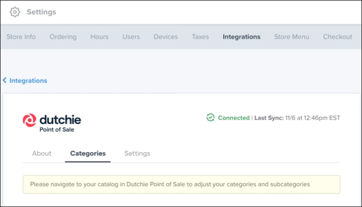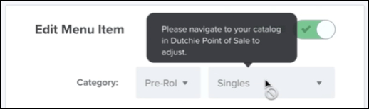 Full-stack locations will now manage category/subcategory mapping entirely in Dutchie POS. Callouts will appear in Dutchie E-Commerce directing users to manage category assignments in Dutchie POS.